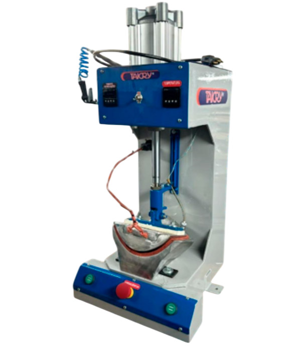 Conta com conjunto de matriz aquecida e prensagem pneumática acionado por botões bimanuais, garantindo um acabamento impecável e padronizado sem oferecer risco à segurança do operador.